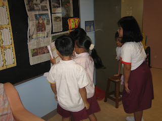 Newspapers can make the learning of Science more meaningful to pupils. To make the Science Topic on Animals more interesting, pupils read newpapers articles on frogs, Orang Utan (Ah Meng) and Hornbill. From reading this articles, they learnt that Mammals have fur as their outer-covering, Birds have feathers and a beak and birds lay eggs.